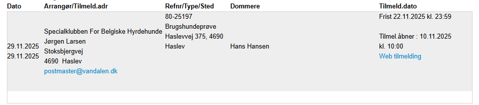 | Tilmeldingsfrist | 29 Nov 2025 |